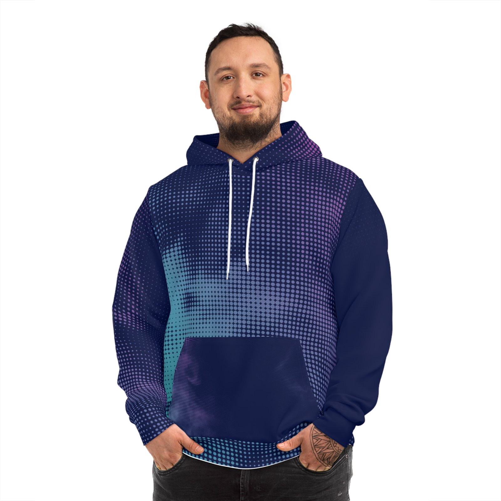 Stay cozy and stylish in this full design hoodie. Perfect for casual outings or lounging at home, this unisex style hoodie is made of medium heavy fabric for comfort. The spacious kangaroo pouch pocket will keep your hands warm, while the adjustable hood with drawstrings adds a touch of customization.
